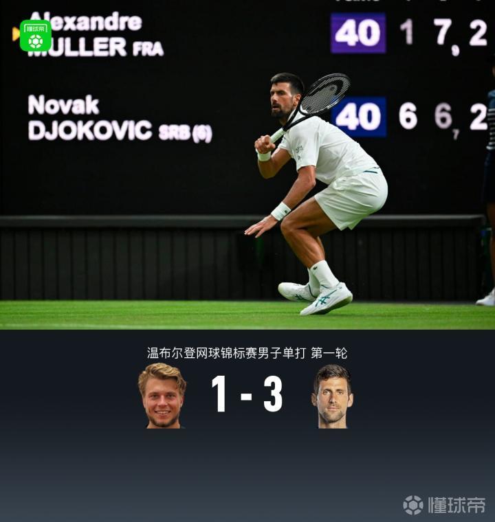 北京时间7月2日,2025年温布尔登网球锦标赛展开了男子单打首轮的一场较量,七届赛会冠军德约科维奇3-1击败法国选手米勒成功晋级。