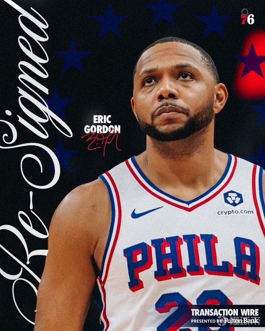 北京时间今日,76人队官方宣布,球队与埃里克-戈登完成续约,合同条款未公布。