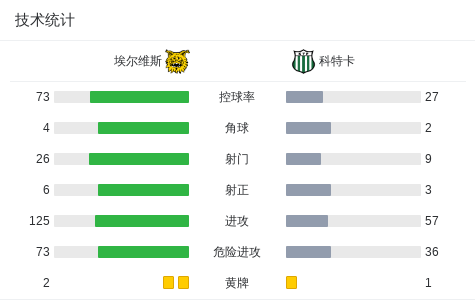 第46分钟,埃尔维斯球员乌伦杜助攻瑟德贝克打入一球。