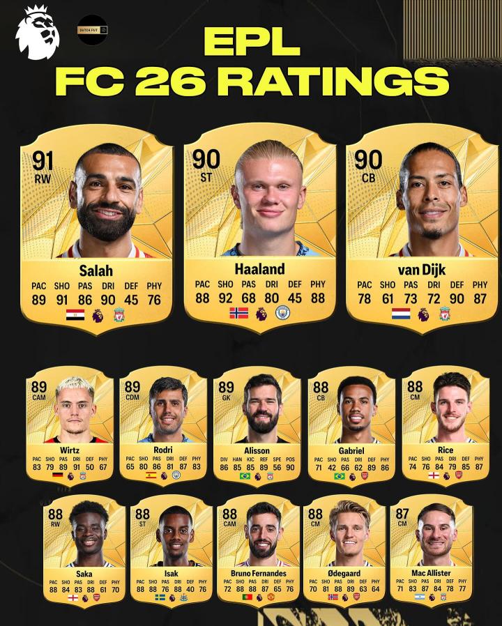 英超联赛FC26能力值最高球员揭秘: