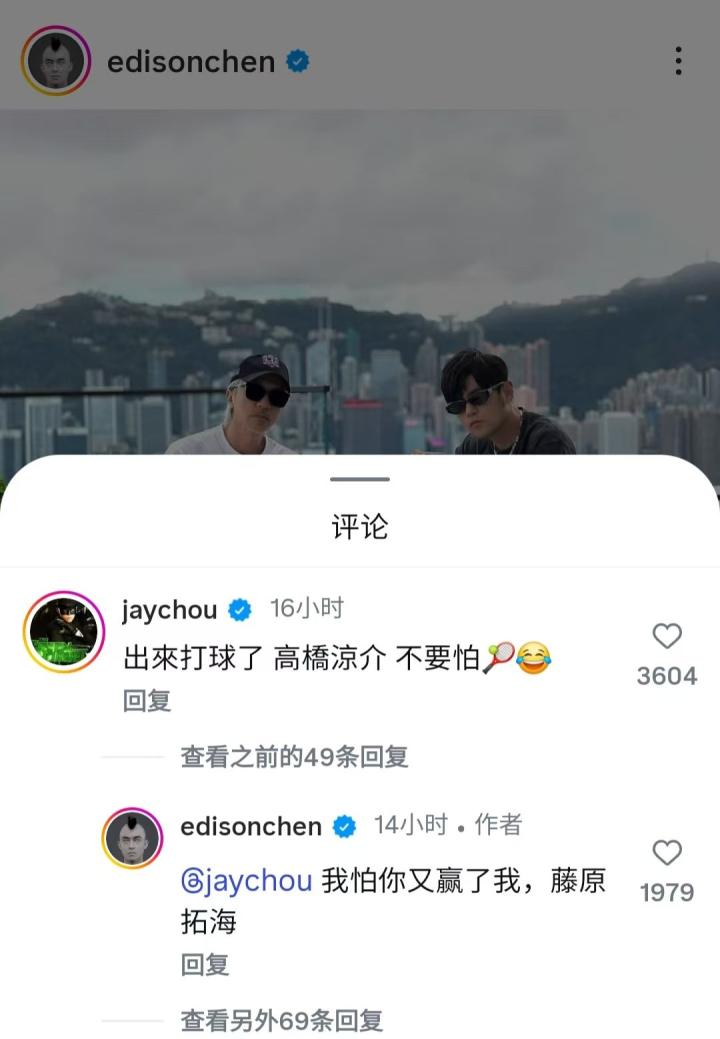 赛后,周杰伦在陈冠希的社媒下留言“约球”:“出来打球了,高桥凉介,不要怕。”而冠希也回复道:“我怕你又赢了我,藤原拓海。”