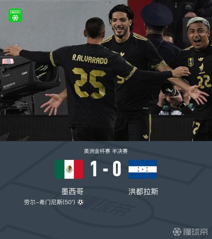 美金杯墨西哥1-0洪都拉斯与美国会师决赛,劳尔-希门尼斯制胜