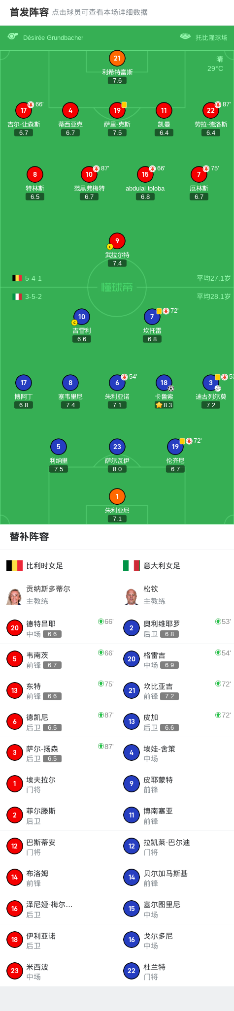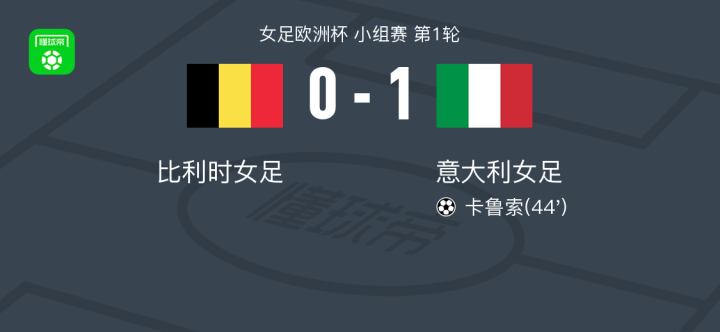 女足欧洲杯小组赛首轮,比利时女足与意大利女足展开较量。上半场临近结束前,意大利队由迪古列尔莫送出助攻,卡鲁索把握机会完成破门。凭借此粒进球,意大利女足以1-0战胜对手,取得赛事开门红。