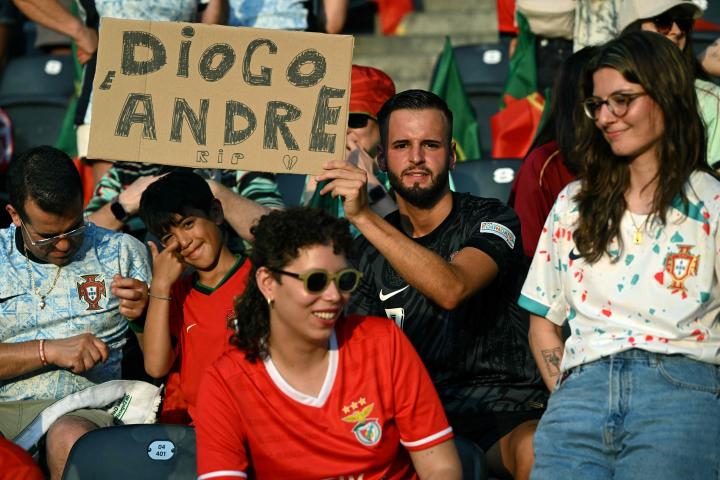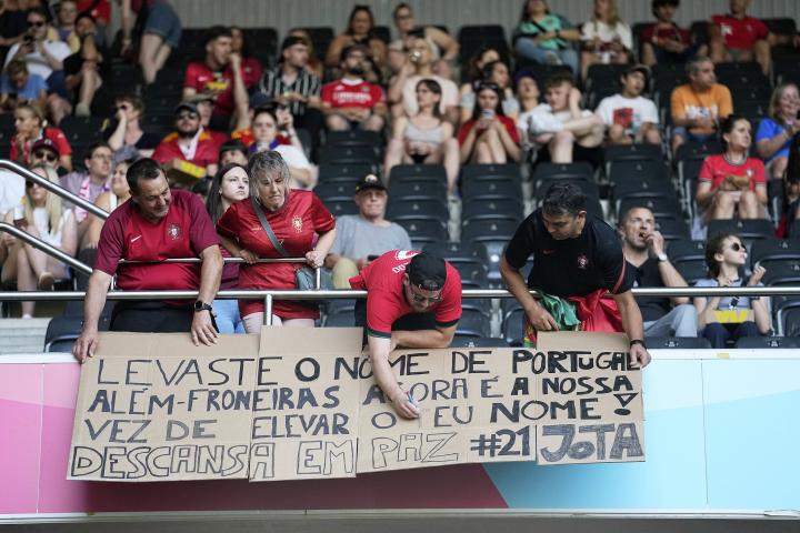 而在场的球迷也自发组织起来,在场内为女足球员加油的同时,也悼念若塔兄弟。葡萄牙球迷希望今天能够取胜,用一场胜利来献给若塔。