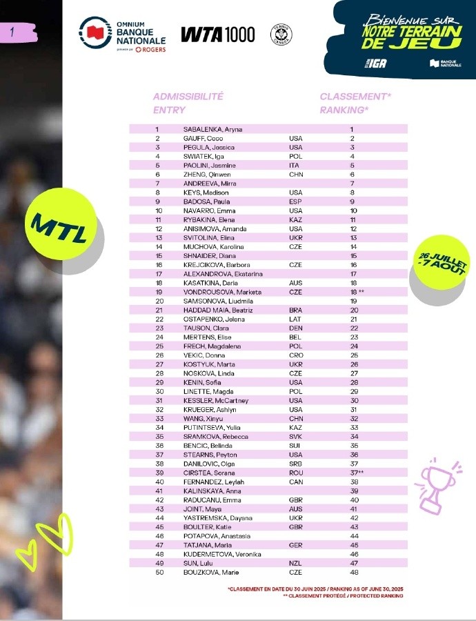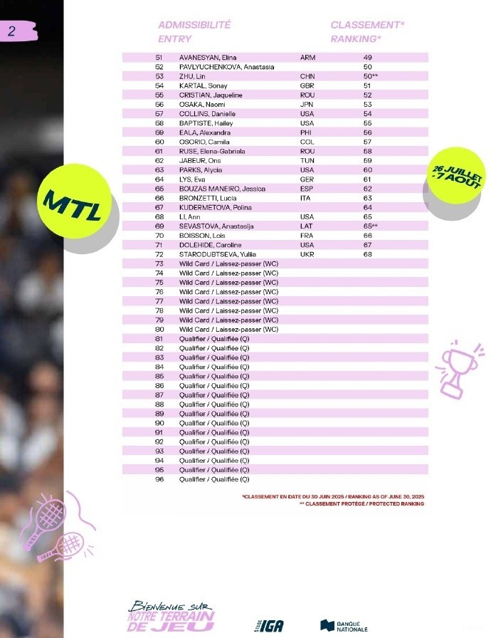 WTA1000蒙特利尔站阵容:郑钦文、王欣瑜、朱琳入围正赛我的靴子里面有蛇 @懂球帝2025-07-04 14:32北京时间7月4日,WTA1000蒙特利尔站公布参赛阵容,萨巴伦卡、高芙领衔,佩古拉作为两届卫冕冠军出战,郑钦文、王欣瑜和朱琳入围正赛。两位本土选手安德莱斯库和姆博科收获外卡。加拿大公开赛是赛季的第七项WTA1000级别赛事,在蒙特利尔和多伦多轮流举办,今年来到蒙特利尔。今年加拿大公开赛扩至96签,将于7月27日到8月7日期间进行。 展开更多