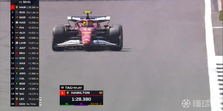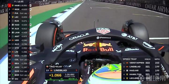 一练停表,林德布拉德的F1首秀排在第14,汉密尔顿拿下全场最快;