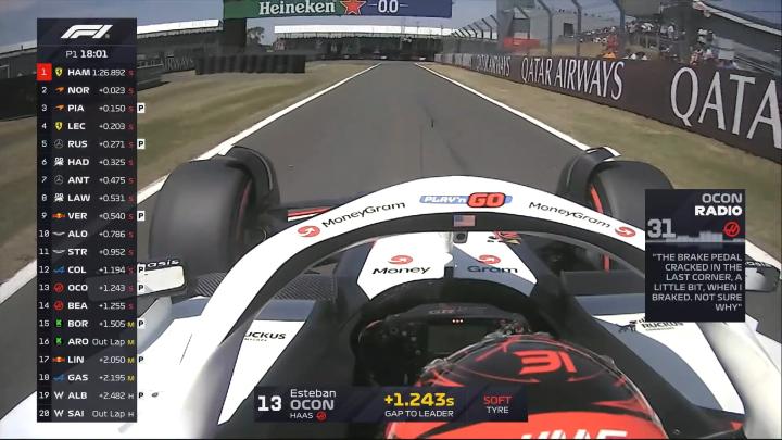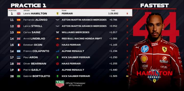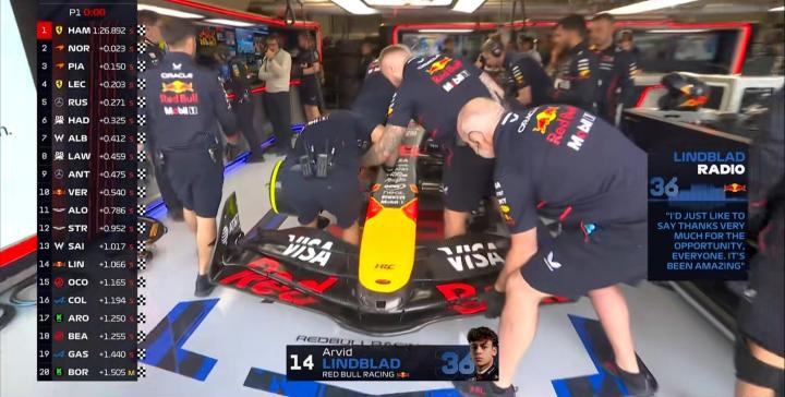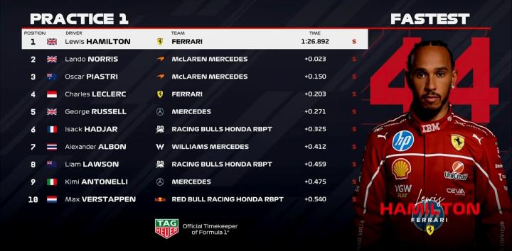 F1英国一练:汉密尔顿全场最快,维斯塔潘P10,林德布拉德P14