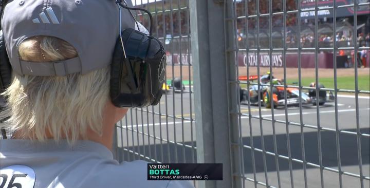 博塔斯于最后时刻在Pit wall旁,观看车手们的发车练习;