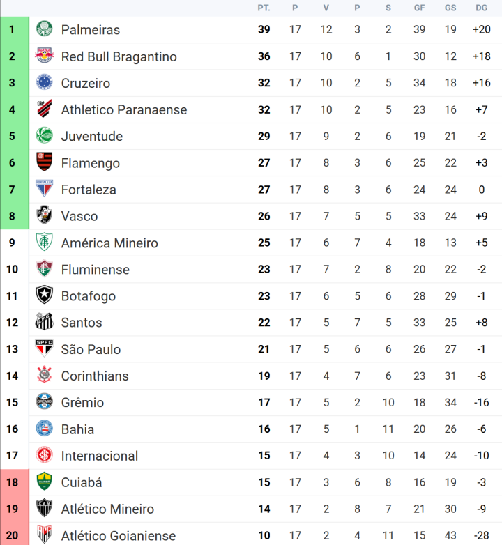 北京时间7月9-11日,2025赛季巴西U20甲级联赛结束第一阶段循环赛第17轮争夺。