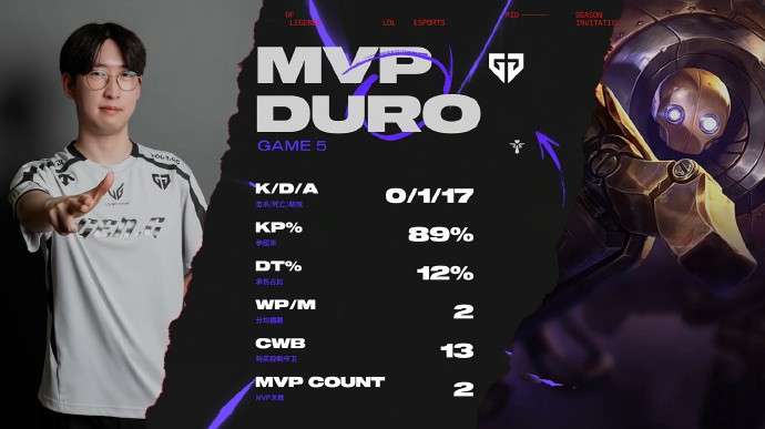 蓝色方GEN选用:Kiin青钢影、Canyon猪妹、Chovy瑞兹、Ruler霞、Duro机器人;
