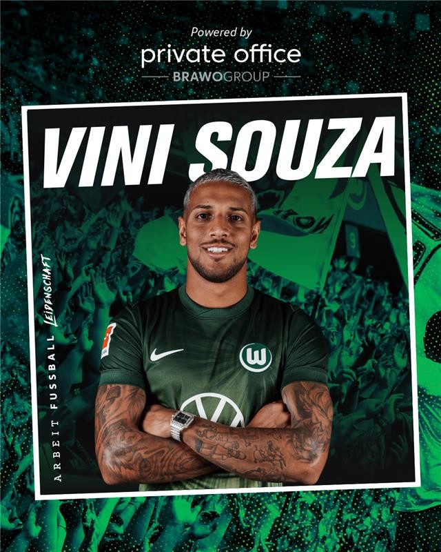 维尼修斯-索萨表示:“我对即将在德甲联赛以及沃尔夫斯堡俱乐部迎来的挑战感到无比兴奋。从一开始,我与俱乐部负责人的交流就非常积极,我感觉自己能在这里迈出职业生涯的下一步。我很期待与新队友们会面,已经迫不及待想开启这段新征程了。”