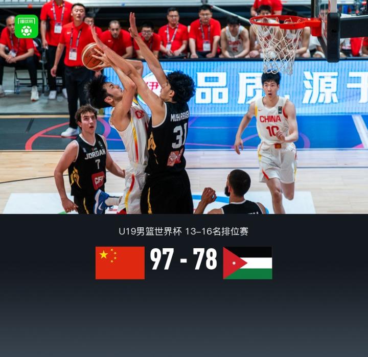 北京时间7月5日,男篮U19世界杯13-16名排位赛中国男篮对阵约旦男篮。开场中国男篮气势如虹迅速取得两位数领先,首节结束领先12分,次节中国男篮一度将分差拉大至23分,但后半节命中率下滑,约旦抓住机会缩小分差,半场中国男篮50-35约旦,第三节中国男篮持续打出高潮多点开花建立27分领先进入末节,末节约旦无力反扑,最终中国U19男篮97-78约旦,迎来本届赛事首胜。