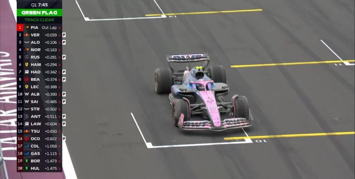 Q2首轮飞驰圈结束,诺里斯位居榜首,排在二三的维斯塔潘&皮亚斯特里做出相同的成绩,两台法拉利&安东内利处于淘汰区;