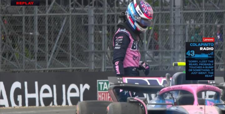 科拉平托在TR中向车队致歉,他表示自己失去了赛车的尾部,而吃上路肩导致赛车的失控;