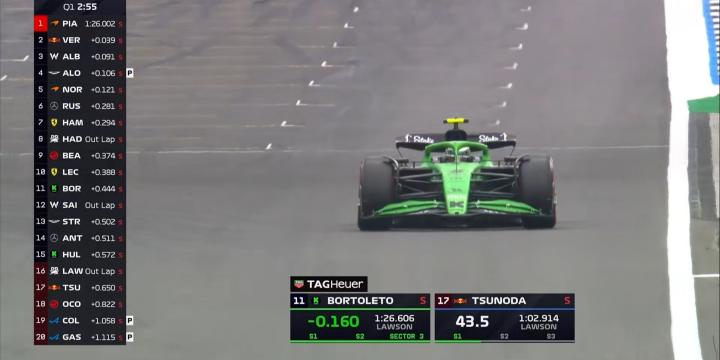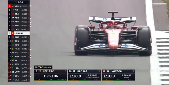 加斯利在最后时刻刷掉劳森,惊险晋级Q2,而第1名的维斯塔潘与第16名的劳森的差距仅0.554秒!