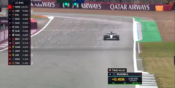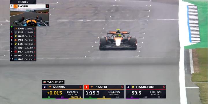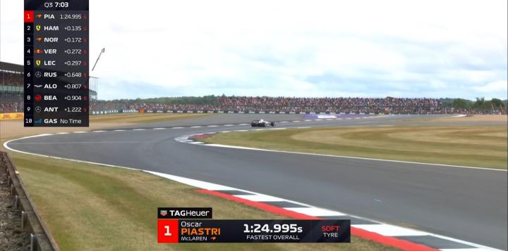 F1英国站排位赛:维斯塔潘杆位,迈凯伦二三,汉密尔顿第5