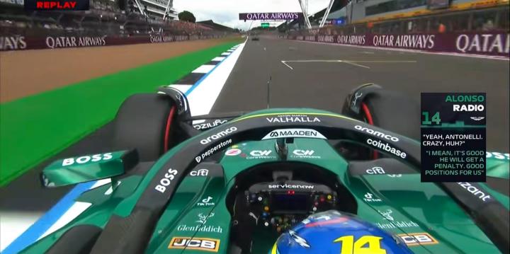 阿隆索在自己的飞驰圈遭到安东内利阻挡,他表示后者在正赛有罚退,这将利好于我们;