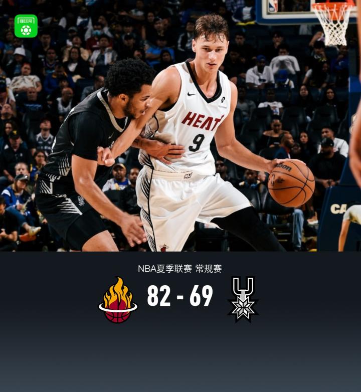 北京时间7月6日NBA夏季联赛,迈阿密热火对阵圣安东尼奥马刺。半场热火32-29马刺,最终热火82-69马刺。