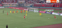 第12分钟,黄希扬主罚任意球,禁区内重庆球员头球击中门框弹出