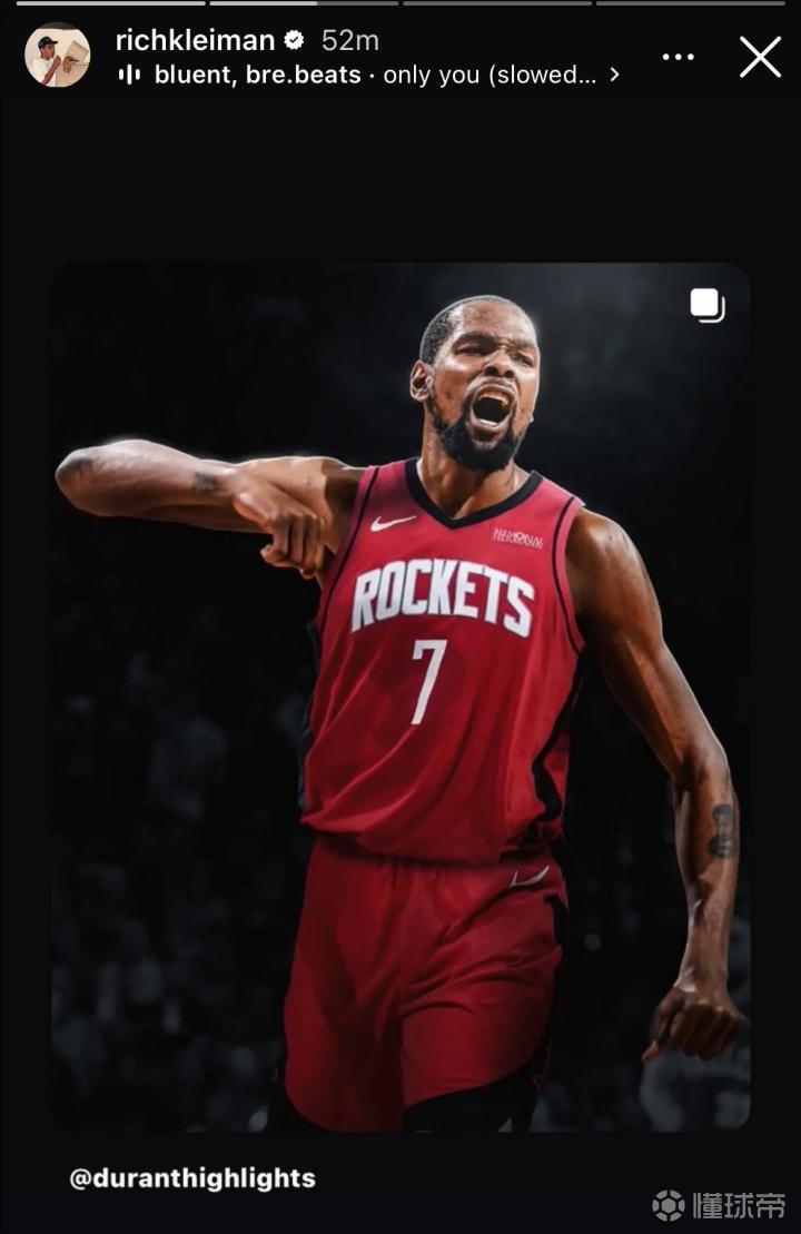 重穿7号,经纪人社媒晒杜兰特身着火箭队7号球衣照片