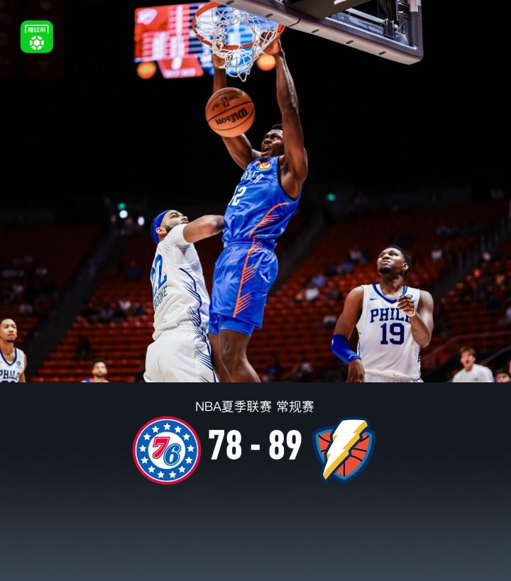 北京时间7月8日NBA夏季联赛,费城76人对阵俄克拉荷马雷霆。半场76人38-43雷霆,最终76人78-89雷霆。