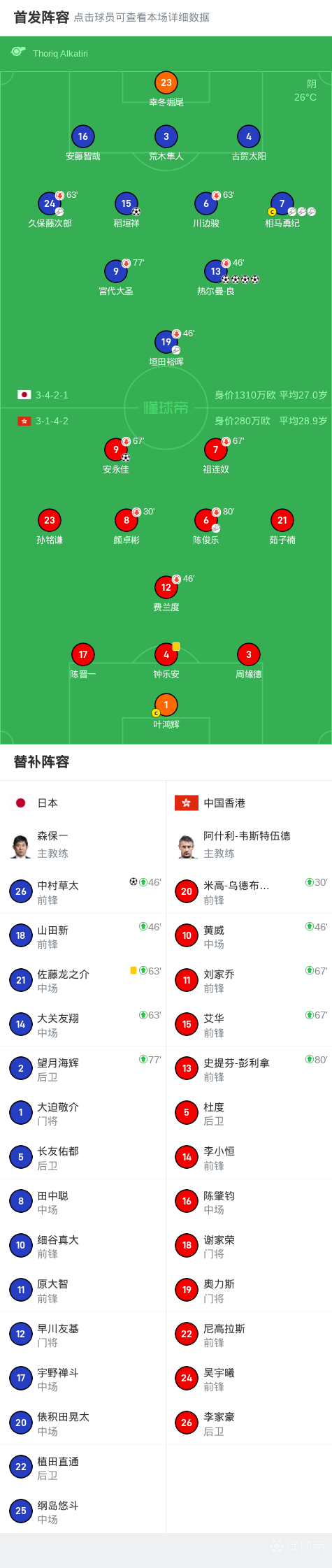 第20分钟,相马勇纪助攻,稻垣祥远射破门,日本3-0领先中国香港