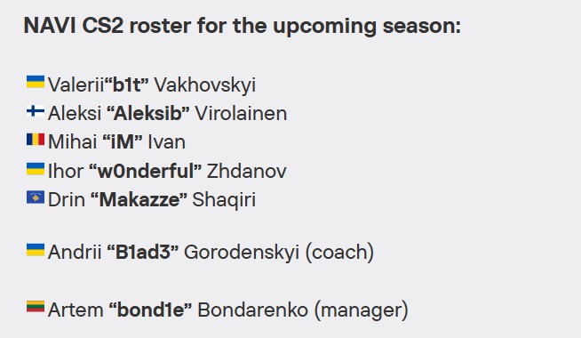 jL暂离的空缺由18岁的科索沃新人Makazze填补,他此前效力于NAVI青训。