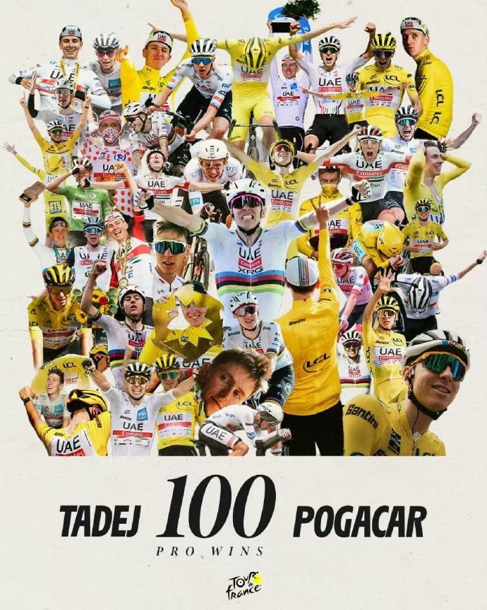 7月9日,2025环法第四赛段,塔代伊-波加查夺冠,这也是职业生涯第100场胜利。