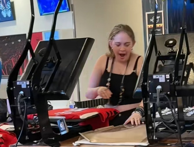 从视频中还能看出,帮球衣印号的店员姐姐满脸疲态,由此可见订单之多。
