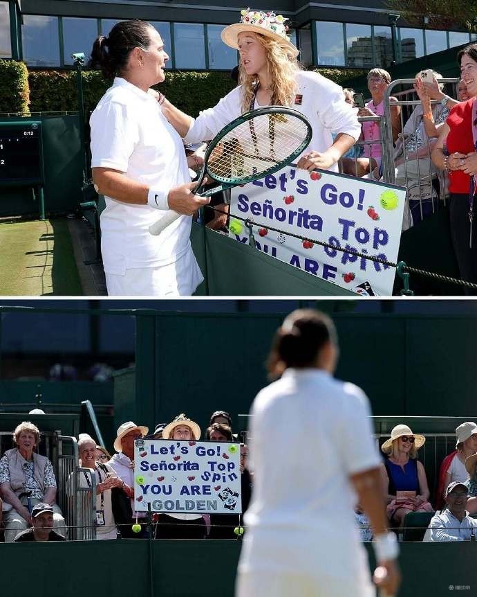 安德列娃给自己的教练马丁内兹加油,后者参加温网元老赛gaoniu @懂球帝2025-07-09 16:187月9日,已经打进温网女单八强的米拉-安德烈娃制作了海报,在现场为参加元老赛的教练马丁内斯呐喊助威。不过,她的教练还是以0-2输掉了比赛。米拉-安德列娃将在今晚20:30对阵本西奇,双方争夺一个四强名额。值得一提的是,中国金花郑洁也出战了本届元老赛混双比赛,搭档曼苏尔-巴赫拉米以1-2(5-7、6-4、9-11)不敌澳洲组合莫里克/伍德布里奇。展开更多