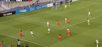 第45分钟,韩国女足进攻,最后文恩珠禁区内无人盯防兜射打高