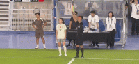第22分钟,韩国女足换人,金维卿伤退,金旻智登场