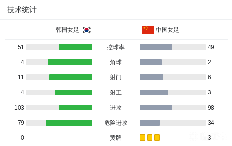 第45+1分钟,张瑟琪补射打在吴海燕腿上弹进球门,韩国女足扳平比分