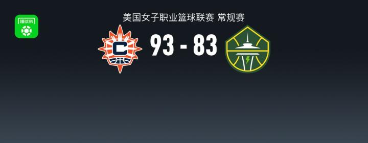 北京时间7月9日美国女子职业篮球联赛 常规赛,康涅狄格太阳对阵西雅图风暴。半场阳光41-49风暴,最终阳光93-83风暴。康涅狄格太阳蒂娜-查尔斯29分11板,杰西谢尔顿16分2板4助;西雅图风暴斯凯勒-狄金斯23分4板7助,加比-威廉姆斯21分5板1助。