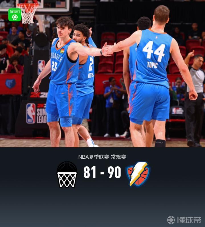 夏季联赛:雷霆90-81篮网,德鲁-蒂米22分,托皮奇18+4+6