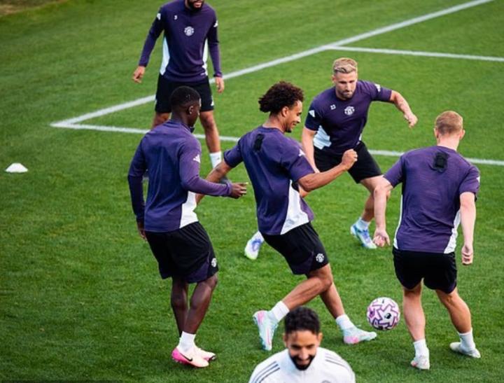 昨天,一起参加训练的还有8名球员,他们因为参加国家队比赛而获得了额外的假期,其中包括B费和达洛特,都已经返回卡灵顿。