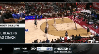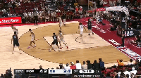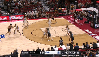 第二节,开节双方持续冲击内线得分,开拓者杨瀚森持球突破上篮拿到生涯首分,紧跟再度内线造杀伤罚球二中一,但随后开拓者进攻哑火,勇士持续追分至7分分差,节末段杨瀚森再度登场,命中打板三分,紧跟再度内线强杀罚球全中,半场战罢,开拓者53-40勇士。