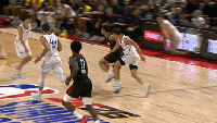 杨瀚森弧顶持球突入内线对抗后上篮命中,拿到夏联首分