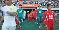 双方球员入场,比赛马上开始