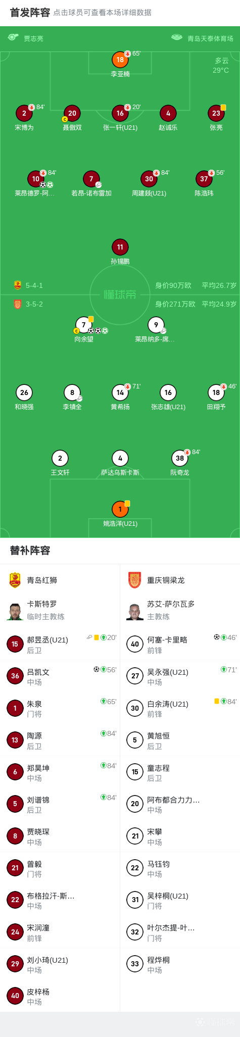 7月12日,中国甲级联赛第16轮,青岛红狮坐镇主场迎战重庆铜梁龙。比赛中,青岛红狮由莱昂德罗-阿尔维斯和吕凯文各入一球,其中莱昂德罗-阿尔维斯主罚点球命中;而重庆铜梁龙则凭借向余望的帽子戏法以及何塞-卡里略在补时阶段的进球完成逆转。最终,重庆铜梁龙以4比3战胜青岛红狮。