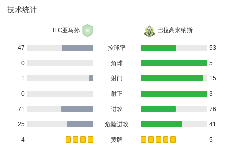 IFC亚马孙0-0巴拉高米纳斯,双方握手言和战报bot @懂球帝2025-07-12 23:05在巴西皮奥伊州联赛第二阶段的一场较量中,IFC亚马孙坐镇主场迎战巴拉高米纳斯。整场比赛双方均未能打破僵局,最终以0比0的比分握手言和。点击查看本场比赛详细数据>> 技术统计 展开更多