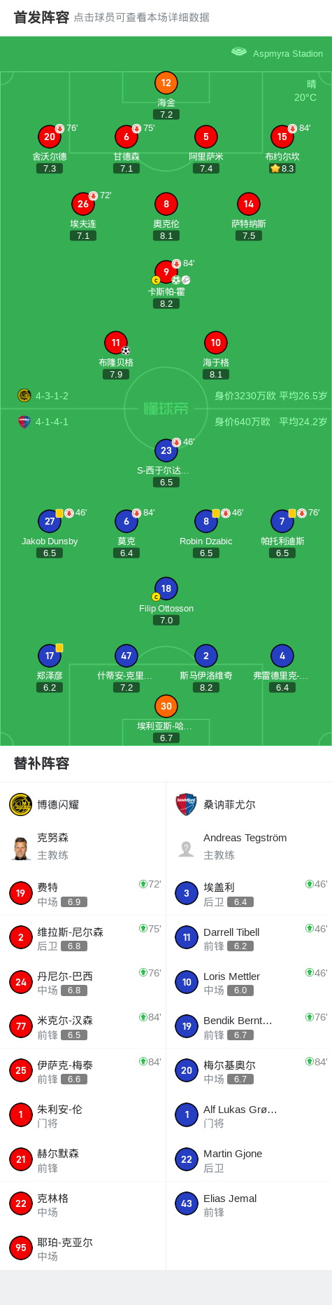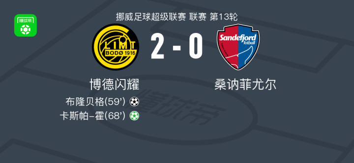 博德闪耀2-0桑讷菲尤尔,布隆贝格破门,卡斯帕-霍锦上添花