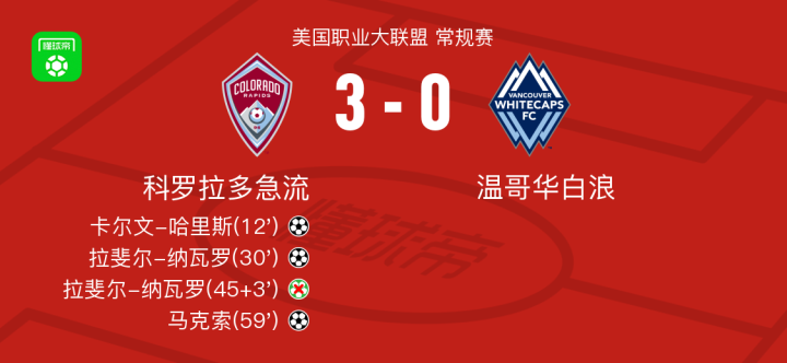 科罗拉多急流3-0大胜温哥华白浪,马克索、拉斐尔-纳瓦罗破门