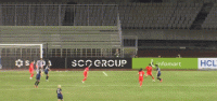 第4分钟,姜綵林快速反击中先来一脚抽射,皮球击中边网