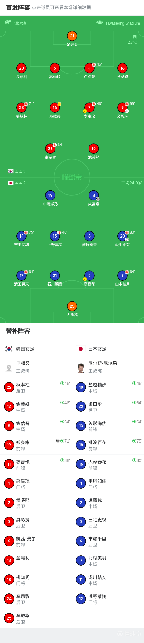 韩国女足1-1日本女足,成宫唯破门,文恩珠助攻郑多彬绝平