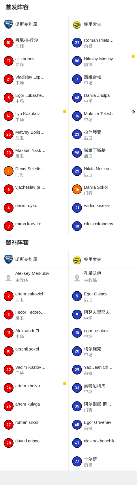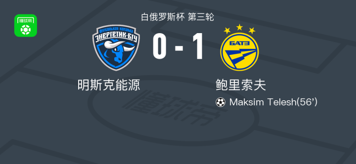 鲍里索夫1-0明斯克能源,Maksim Telesh助球队取胜战报bot @懂球帝2025-07-13 23:197月13日,白俄罗斯杯第三轮比赛展开角逐,明斯克能源迎战鲍里索夫。比赛中,鲍里索夫球员Maksim Telesh成功破门,打入全场唯一进球。最终比分定格为明斯克能源 0-1 鲍里索夫。点击查看本场比赛详细数据>>精彩瞬间第56分钟,鲍里索夫球员Maksim Telesh打入一球。 球队阵容 技术统计 展开更多