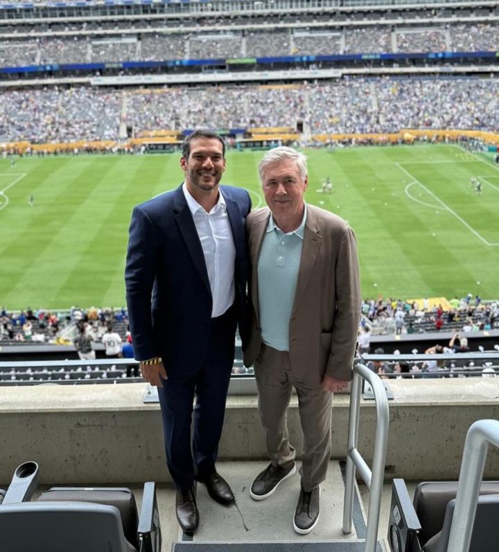 2025年世俱杯决赛,切尔西3-0击败巴黎圣日耳曼夺冠,曾执教过这两支球队的安切洛蒂晒出他在现场观看比赛的照片。