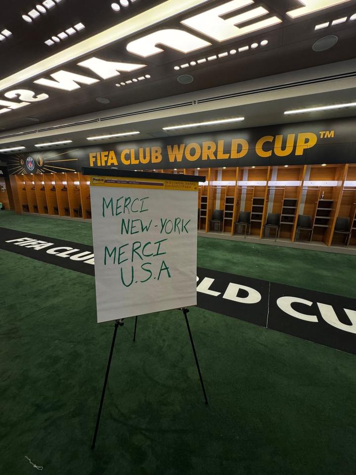 北京时间7月14日,在纽约大都会人寿体育场举行的2025世俱杯决赛中,巴黎圣日耳曼0-3不敌切尔西错失冠军。赛后,巴黎圣日耳曼的球员和工作人员将更衣室打扫干净后在展板上写下留言,对美国和纽约这座城市在世俱杯期间的热情款待表示了感谢。