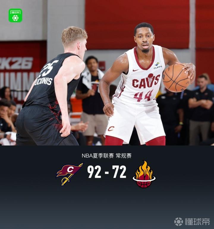 北京时间7月14日NBA夏季联赛 常规赛,克利夫兰骑士对阵迈阿密热火。半场骑士44-41热火,最终骑士92-72热火。克利夫兰骑士杰伦-泰森21分6板5助,特里斯坦-埃纳鲁纳19分4板2助;迈阿密热火凯尔-韦尔21分9板,拉尔森14分3板2助。