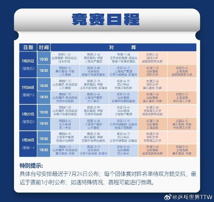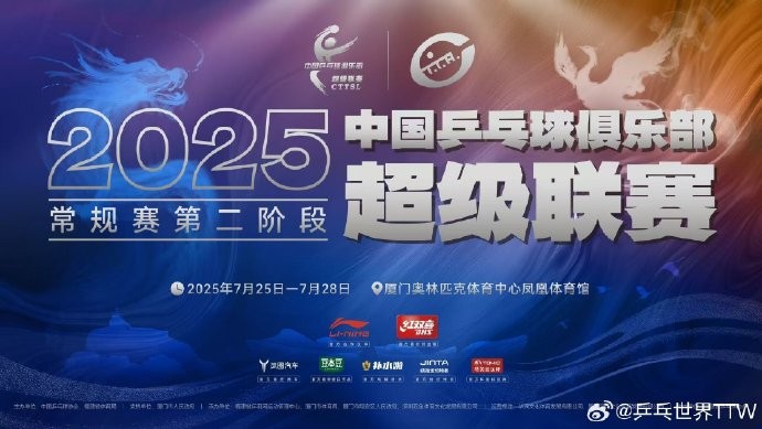 7月14日,乒乓世界宣布:2025赛季中国乒乓球俱乐部超级联赛常规赛第二阶段比赛,将于7月25日至28日,在福建厦门奥体中心凤凰体育馆打响。